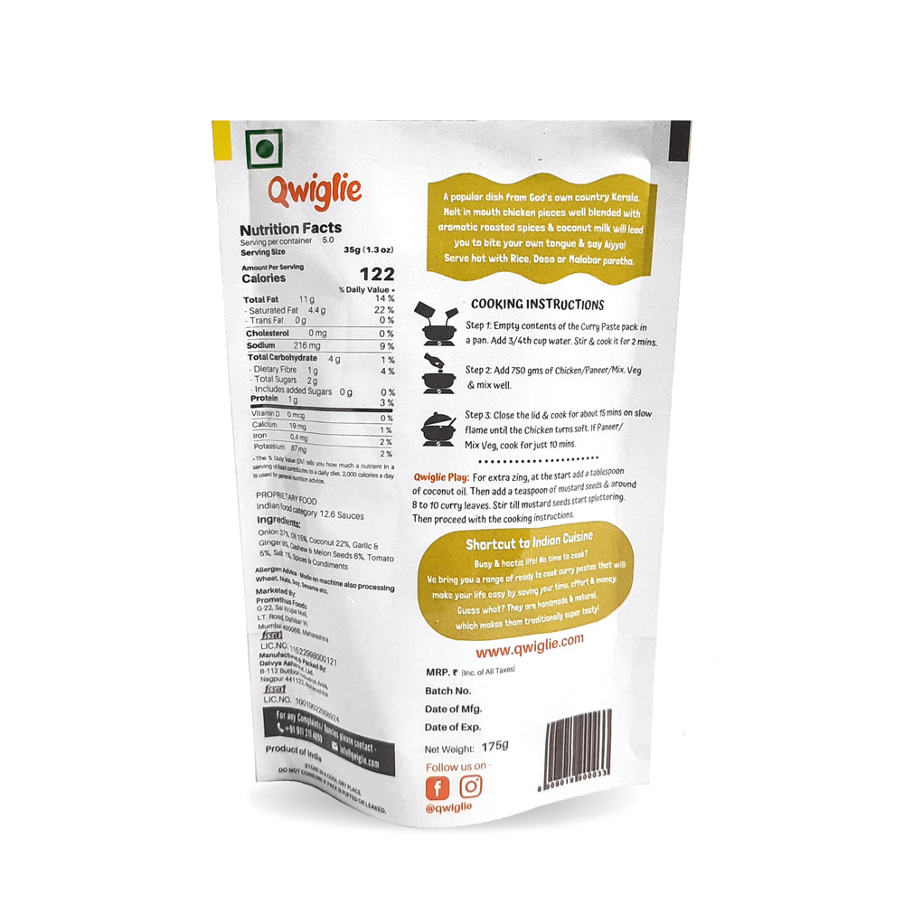 Onion 37%, Oil 15%, Coconut 22%, Garlic & Ginger 9%, Cashew & Melon Seeds 6%, Tomato 5%, Salt 1%, Spices & Condiments